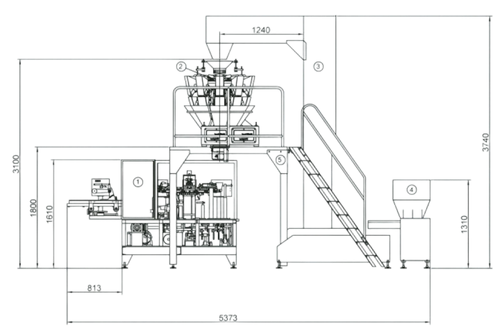 This automatic line, by combining rotary packer, multi-head weigher, elevator and support platform, is suitable for packing all kinds of granules such as candy, nuts, dried fruits, currant, fudge, peanut, seeds, pip, chocolate, crackers, coffee beans, rice, frozen food, tablets, capsules, washing powder, fertilizer, etc.