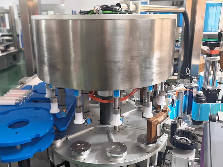 This type of equipment adopts a rotary (revolving) motion structure, which drives the containers to rotate synchronously through a turret conveyor system, and cooperates with a high-speed labeling head to complete circumferential labeling, achieving continuous uninterrupted operation. It is particularly suitable for seamless docking with filling lines and packaging lines, forming a fully automated flow process.